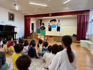 2025年10月23日 / 最終更新日 : 2025年12月16日 編集担当済美 交通安全教室に参加しました🚥 警察官の方・交通指導員の方が来てくださり、交通ルールについてお話しやクイズを通して楽しく知ることができました😊 その後は、みんなで横断歩道の正しい渡り方について教えてもらい渡る練習をしました! 是非ご家庭でもお話を聞いてみてください🎶