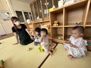 室内では、手作り玩具で遊んだり在園児と触れ合ったりしている子もいましたよ♪