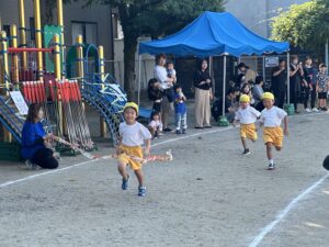 卒園児も来てくれて玉入れをしたり、保護者対抗綱引きも急遽行いましたが、沢山の方が参加してくださって大盛り上がりの運動会となりましたよ😀