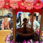 色とりどりのお花で飾った花御堂を囲み、甘茶をかけたり手を合わせてお釈迦様のお誕生をお祝いしました。