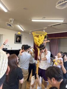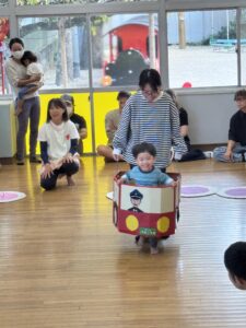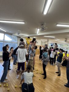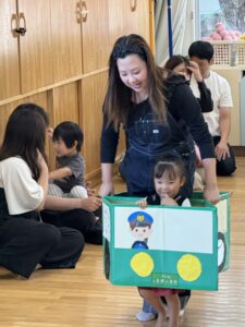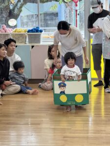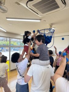 その後、運動会の時に4歳児 もも組がした親子競技と玉入れをしました!